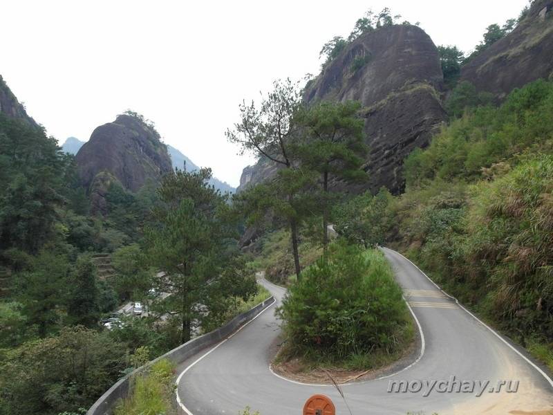 Вид на ущелье, где растут кусты Да Хун Пао, со стороны тропы к монастырю Тянь Синь.