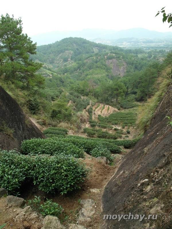 Чайные плантации примерно в 50 километрах в югу от города Уишань, предгорья УИ. Здесь делают так называемые "равнинные" северофуцзяньские улуны. В отличие от утёсных, они ценятся значительно меньше.