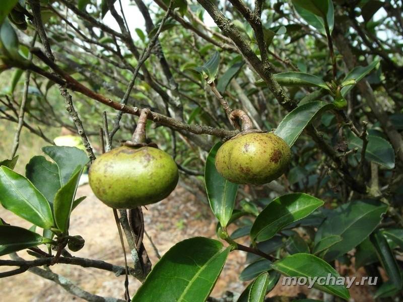 Плоды чайного куста. Внутри зреют три семечка.